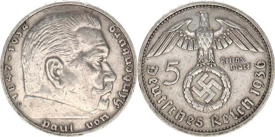 5 RM 1936 A - Hindenburg, svastika_rysky