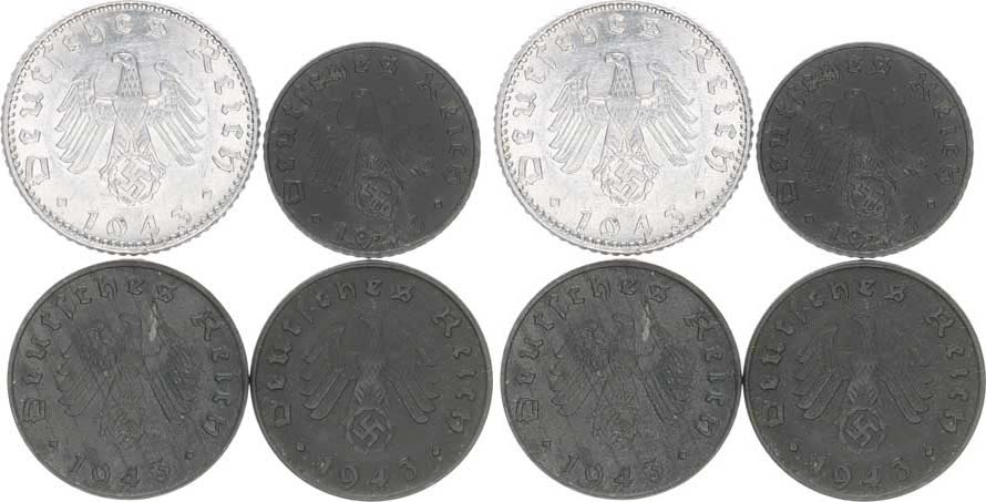 50 Rpf. 1943 A (Al); +10 Rpf. 1943 B, E; +5 Rpf. 1943 E - Zn 4 ks