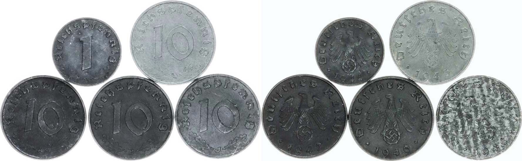 10 Rpf. 1940 B, J, 1942 A, 1943 A; +1 Rpf. 1944 B 5 ks