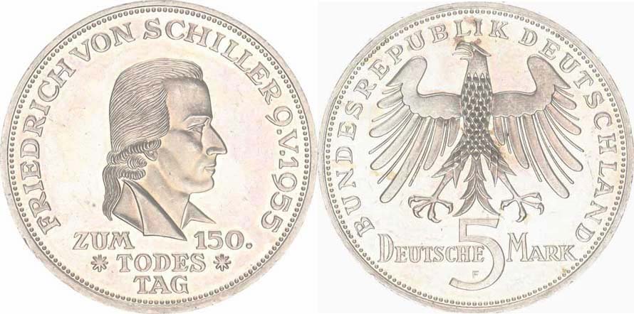 5 DM 1955 F - Schiller "RR" KM 114 11,108 g