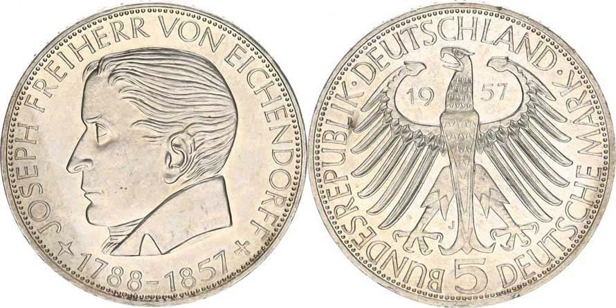 5 DM 1957 J - Eichendorff "RR" KM 117
