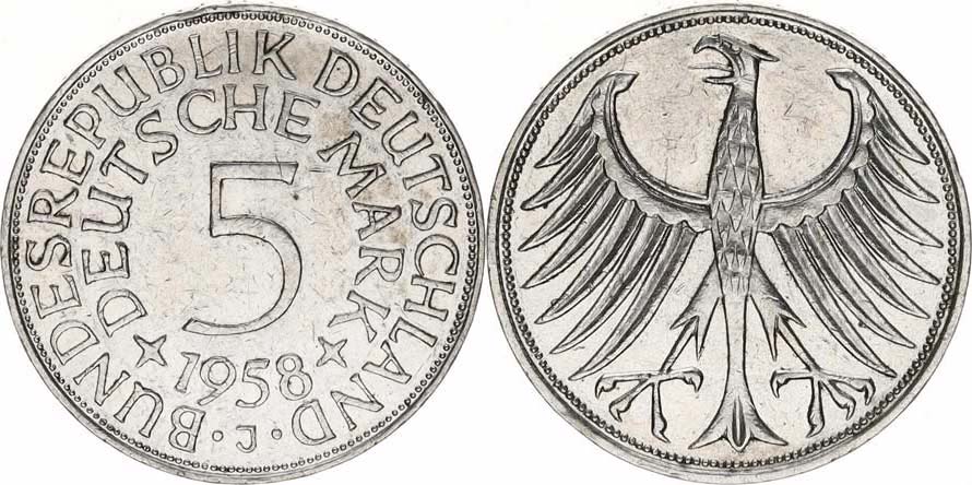 5 DM 1958 J KM 112,1 "RRR" 11,198 g _nep. hr., zc. jemné rys.