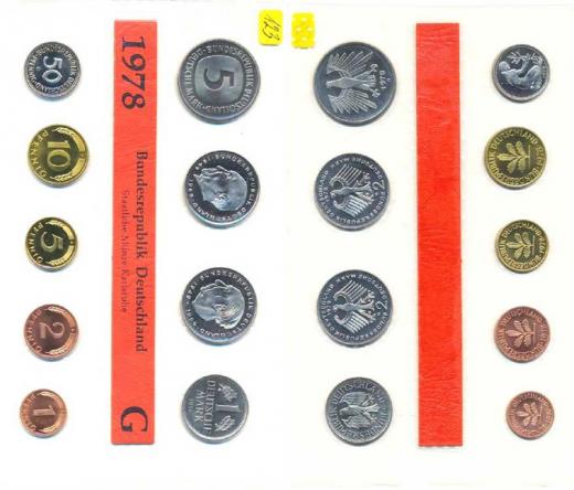 Ročníková sada mincí 1978 minc. G (1, 2, 5, 10, 50 Pf., 1, 5, 2 DM - Adenauer, Heuss) 9 ks zataveno v orig. folii mincovny MS 19