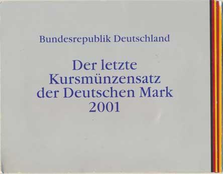 Ročníková sada mincí 2001 minc. D (1, 2, 5, 10, 50 Pf., 1, 5, 2 DM - Eberhart, Strauss, Brandt) 10 ks v orig. balení s texte m PS 151