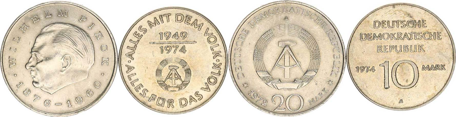 20 M 1972 A - Wilhelm Pieck KM 42 10 M 1974 - 25. výročí DDR KM 50 2 ks