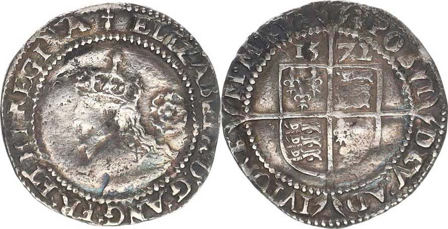 6 Pence 1572 "R" Spink: 2562; North 1997 2,854 g