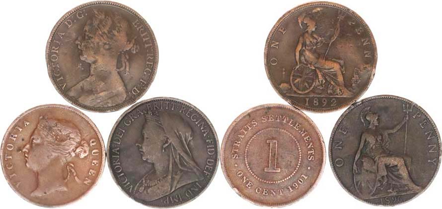 1 Penny 1892, 1896; +Straits Settlements - 1 Cent 1901 3 ks
