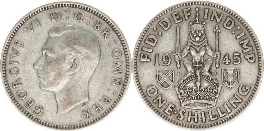 1 Shilling 1945 KM 853 Ag 500 23,5 g