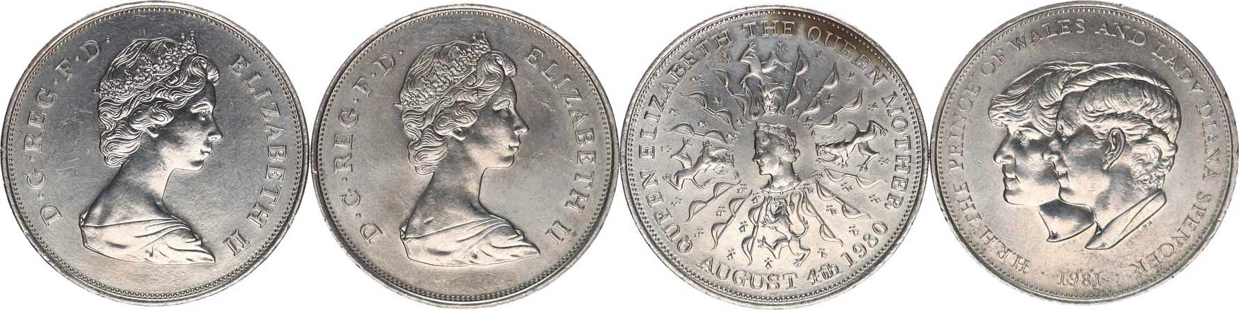 25 New pence 1981 - svatba prince Charlese a Lady Diany KM 925 25 New pence 1980 - 80. výr. narození královny matky KM 921 obě CuNi 2 ks