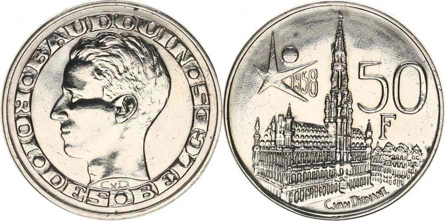 50 Francs 1958, DES BELGES - EXPO Brusel KM 150,1 Ag 8 35