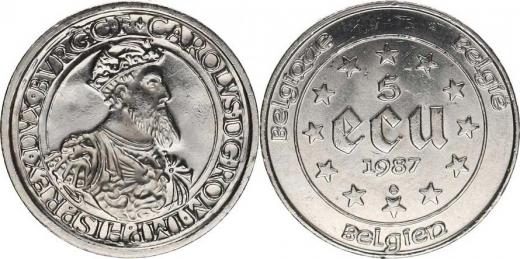 5 Ecu 1987 - král Karel V. KM 166 Ag 833 22,85 g (10 000 ks) kapsle +certifikát