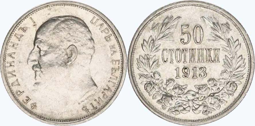 50 Stotinki 1913 KM 30 Ag 835 2,5 g_tém.