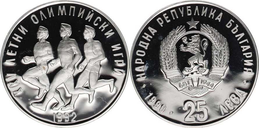 25 Leva 1990 - XXV. OH 1992, běžci KM 196 Ag 925 23,38 g kapsle