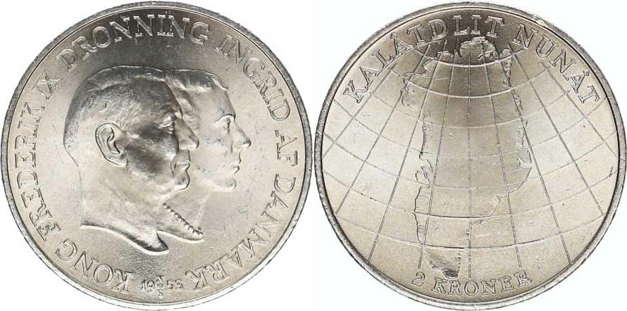 2 Kroner 1953 N S - Grónsko KM 844 Ag 800 15,00 g "R"