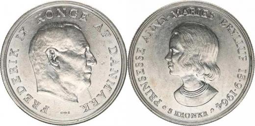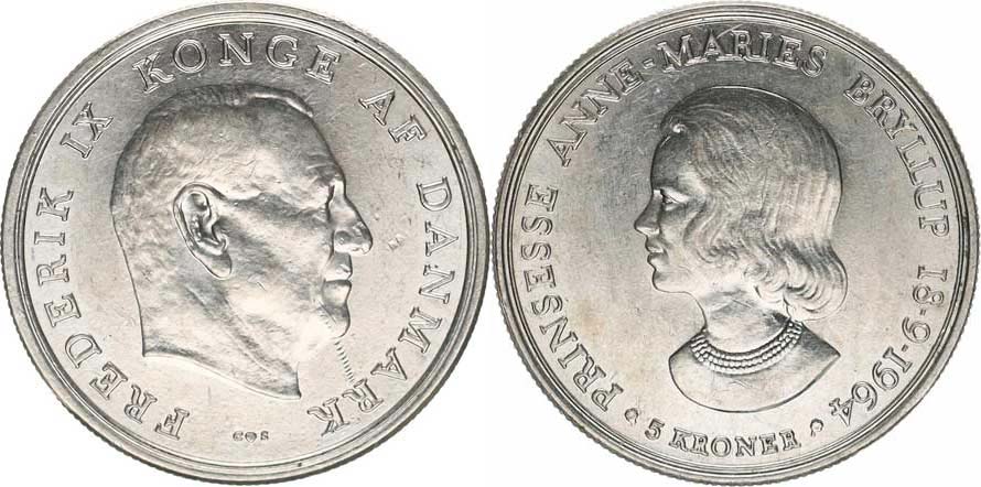 5 Kroner 1964 CS - Svatba princ. Anne Marie KM 854 Ag 80 0 17,00 g