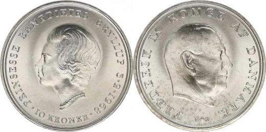 10 Kroner 1968 - princ. Benedikte KM 857 Ag 800 20, 4 g