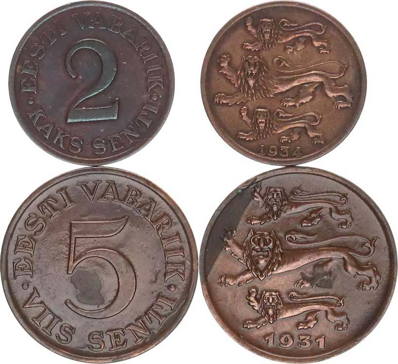 2 Senti 1934; +5 Senti 1931 (lak.) KM 15, 11 2 ks