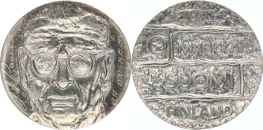 10 Markkaa 1970 SH - Paasikivi KM 51 Ag 500 22,75 g kapsle