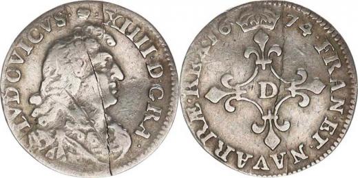 4 Sols (Ag) 1674 D, Lyon KM 232; GadR 103; Dy royales 150 4_napr. střížek, tém.