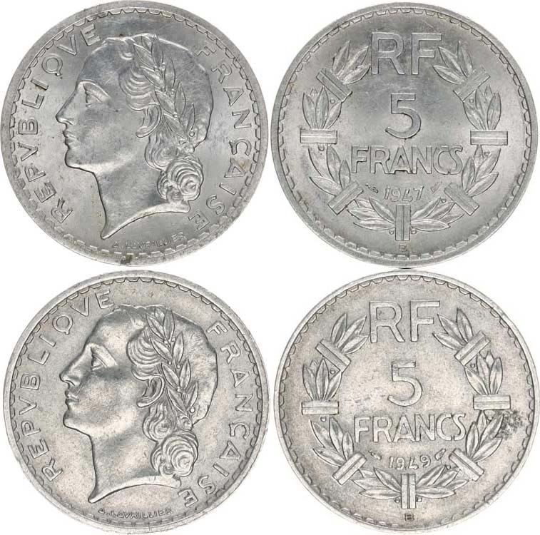 5 Francs 1947, 1949 KM 888b 2 ks