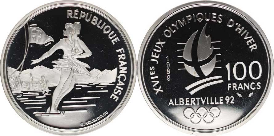 100 Francs 1989 - OH Albertville 1992, krasobruslení KM 972 Ag 900 22,20 g kapsle