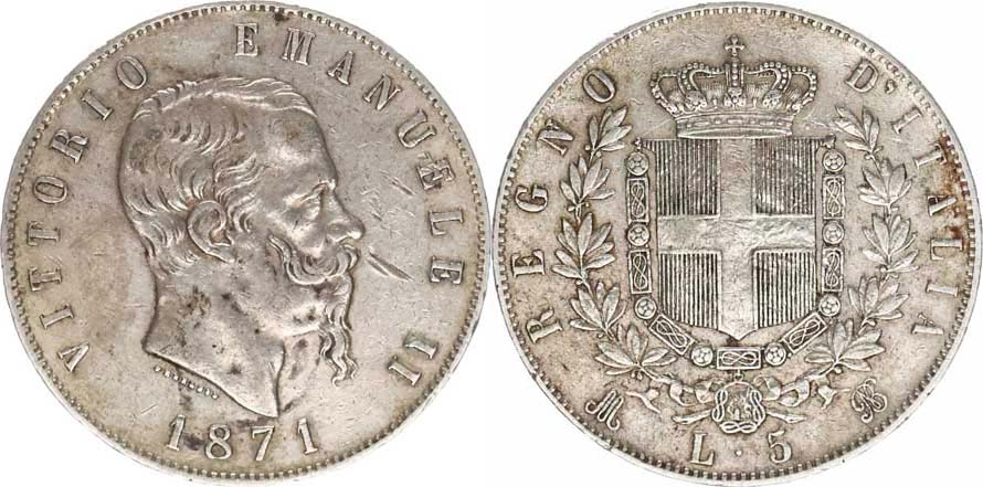 5 Lire 1871 M/BN KM 8,3 24,94 g_vryp, tém.