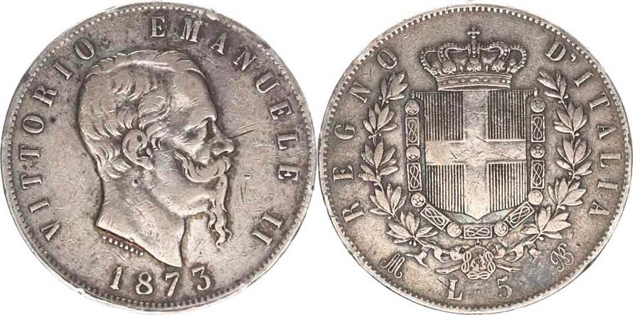 5 Lire 1873 M/BN KM 8,3 15,061 g _zc. nep. hr., dr. rys., tém.