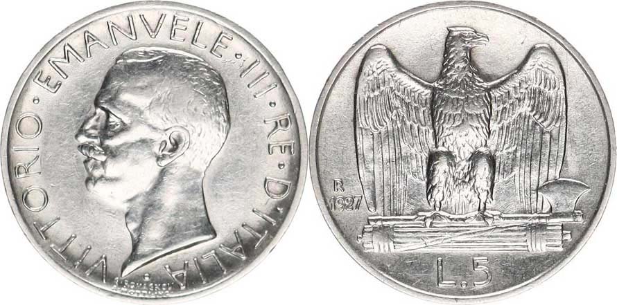 5 Lire 1927 R, var.: **FERT** KM 67,2