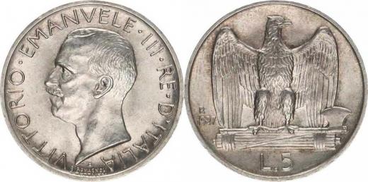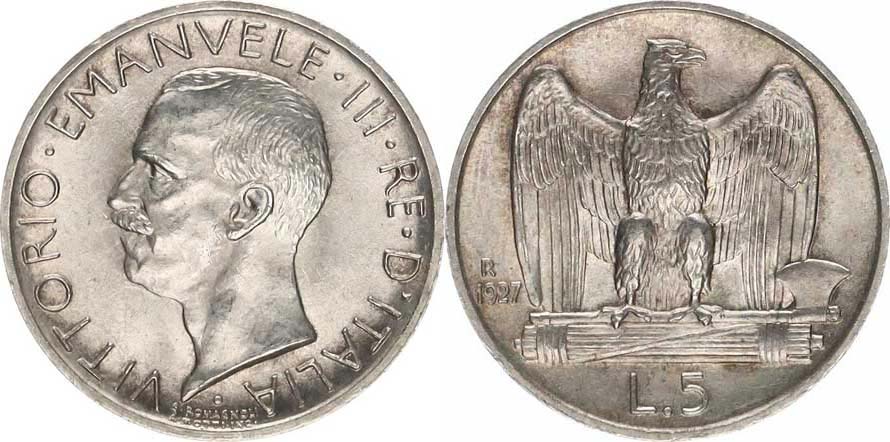 5 Lire 1927 R, na hraně *FERT* KM 67,2