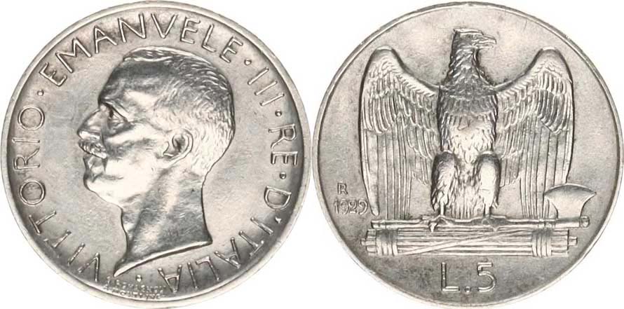 5 Lire 1929 R - var.: **FERT** KM 67,2