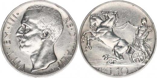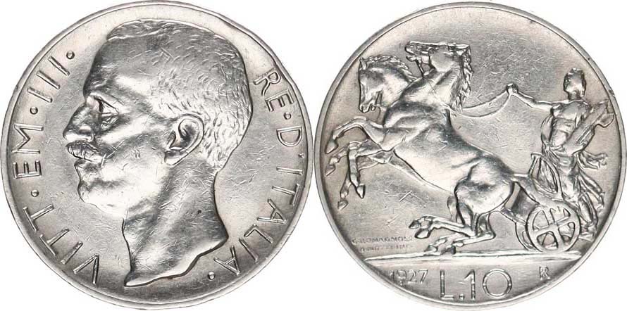 10 Lire 1927 R var.: **FERT** KM 68,2 "R"