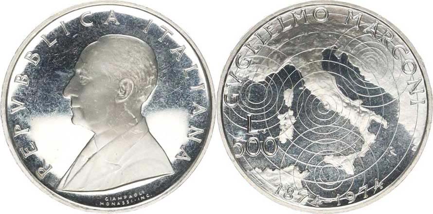 500 Lire 1974 R - Gugliemo Marconi KM 103 Ag 835 11,0 0 g
