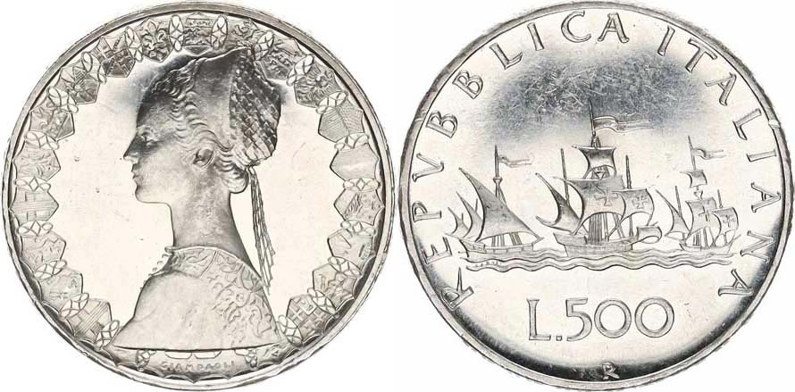 500 Lire b.l. (1993) R - Kolumbova loď KM 98 Ag 835 11 g