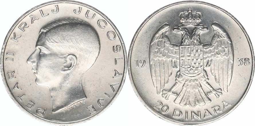 20 Dinara 1938 KM 23 Ag 750 9 g