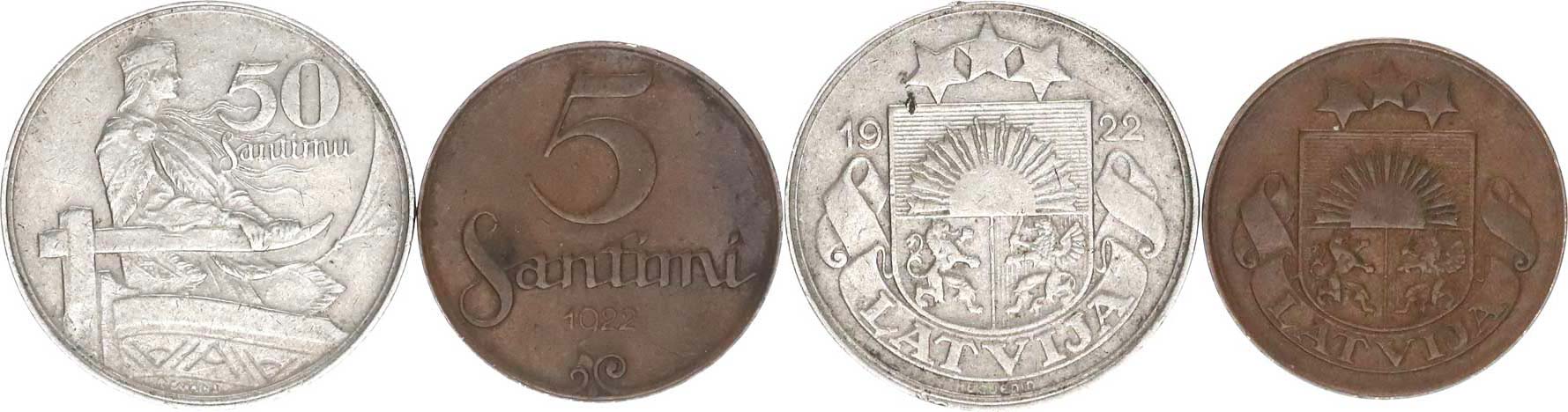 50 Santimu 1922; +5 Santimu 1922 2 ks
