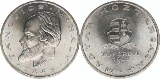 20 Forint 1948 BP - Táncsis Mihály KM 539 Ag 500 28 g