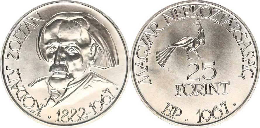 25 Forint 1967 - Zoltán Kodály KM 577 Ag 750 12 g (15 0 00 ks)