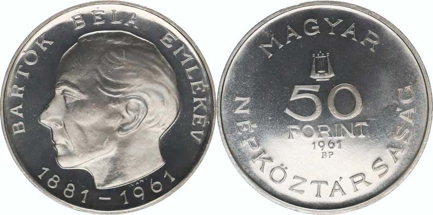 50 Forint 1961 - Béla Bartók KM 561 Ag 750 20 g (15 000 ks)