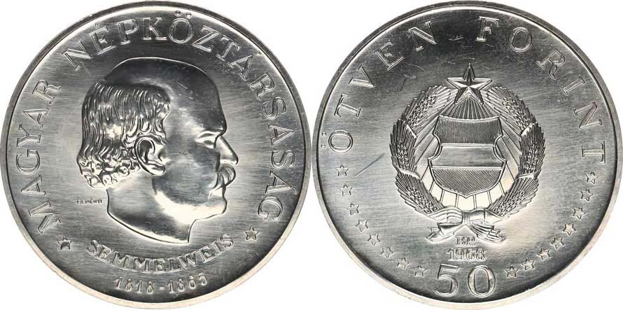 50 Forint 1968 BP - Semmelweis Ignác KM 582 Ag 640 2 0 g