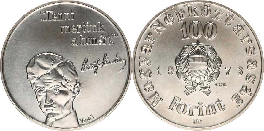 100 Forint 1973 BP - Sándor Petöfi KM 600 Ag 640 22,00 g