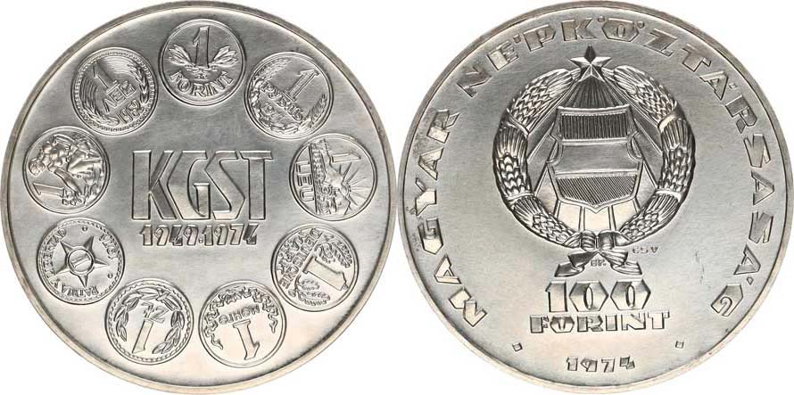 100 Forint 1974 BP - 25. výročí KGST KM 602 Ag 640 22 ,00 g