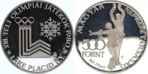 500 Forint 1980 BP - OH Lake Placid KM 619 Ag 640 39 g (12 500 ks) orig. pošetka