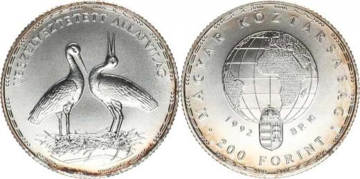 200 Forint 1992 - dva čápi KM 688 Ag 500 10,00 g kapsle