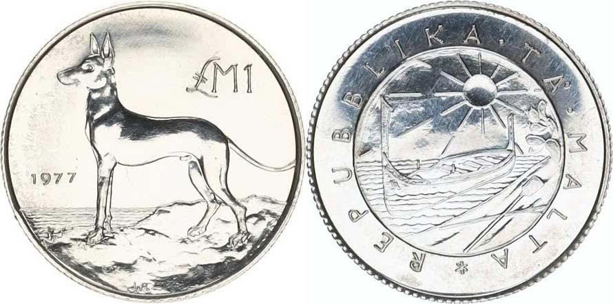 1 Lira 1977 - Maltézský pes KM 45 Ag 925 5,66 g
