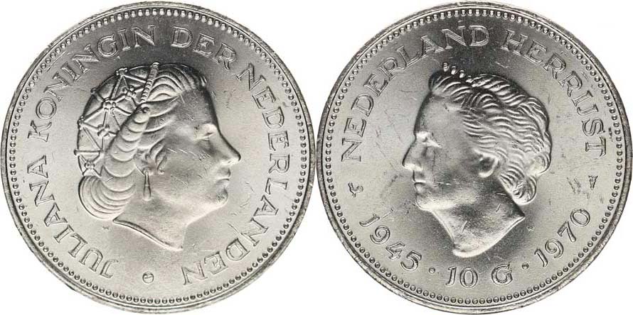 10 Gulden b.l. (1970) - 25. výročí osvobození KM 195 Ag 7 20 25,00 g