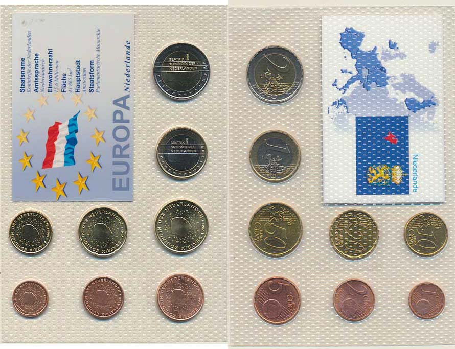Ročníková sada EURO mincí 2005 (1, 2, 5, 10, 20, 50 Cents, 1, 2 E uro) 8 ks adjustace ve folii s vlajkou státu a nápisem EURO PA