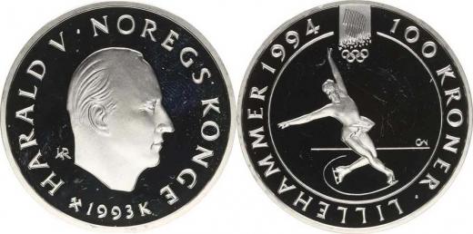 100 Kroner 1993 K - OH 1994 Lillehammer, krasobruslení KM 449 Ag 925 33,62 g kapsle