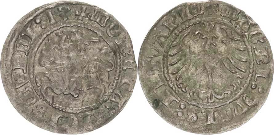 1/2 Groš litevský 1513, Wilno Kopicki 3139; Sa 5513 "R" 1,233 g