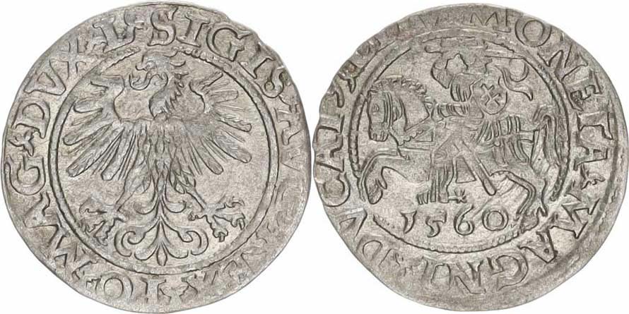 1/2 groš litevský 1560, Wilno - opis: MAG. DVX. L. / LITV. Zag. 65; Kop. II. str.41 II/17a_mír. exc., jinak tém.
