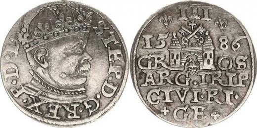 III Groš 1586, Riga opis: REX. P. D. L . / CIVI . RI . Iger R.86.2.a (R); K.-G. 26a; Zag. 180 2,267 g_lak., tém.